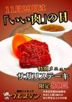 <11/29限り>いい肉の日限定「サガリステーキ」を提供!